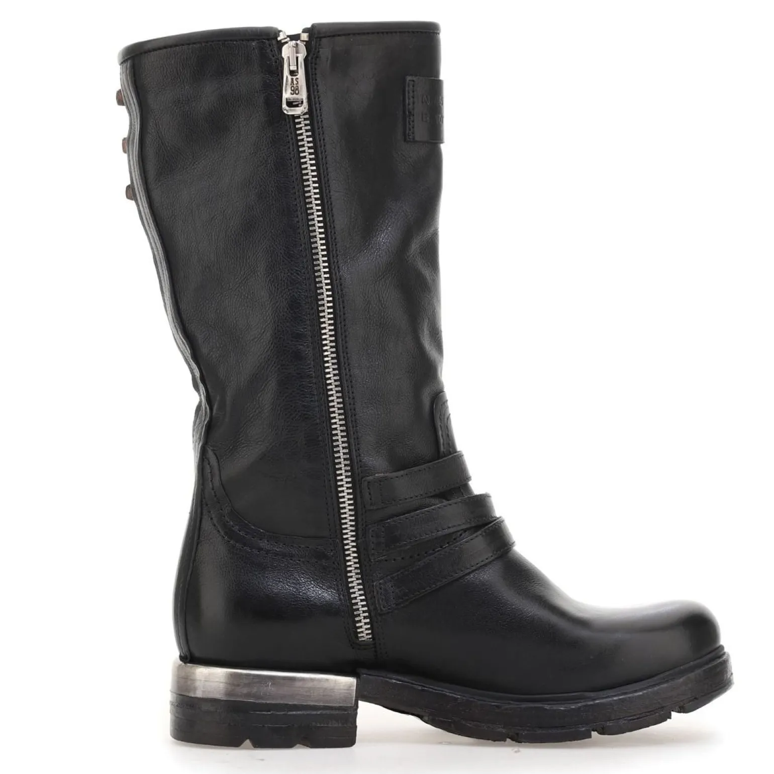 Die Linie Archè zeichnet sich durch Schuhe und Stiefel mit einem unverwechselbaren, rebellischen Design aus, das durch wichtige Reißverschlüsse und Schnallen gekennzeichnet ist. Einige Modelle greifen das Design von Stücken auf, die die Geschichte der Marke geprägt haben, indem sie die ikonischen Stiefel der zeitlosen Rockstar-Kollektion wieder aufgreifen, aber mit einem modernen Twist.