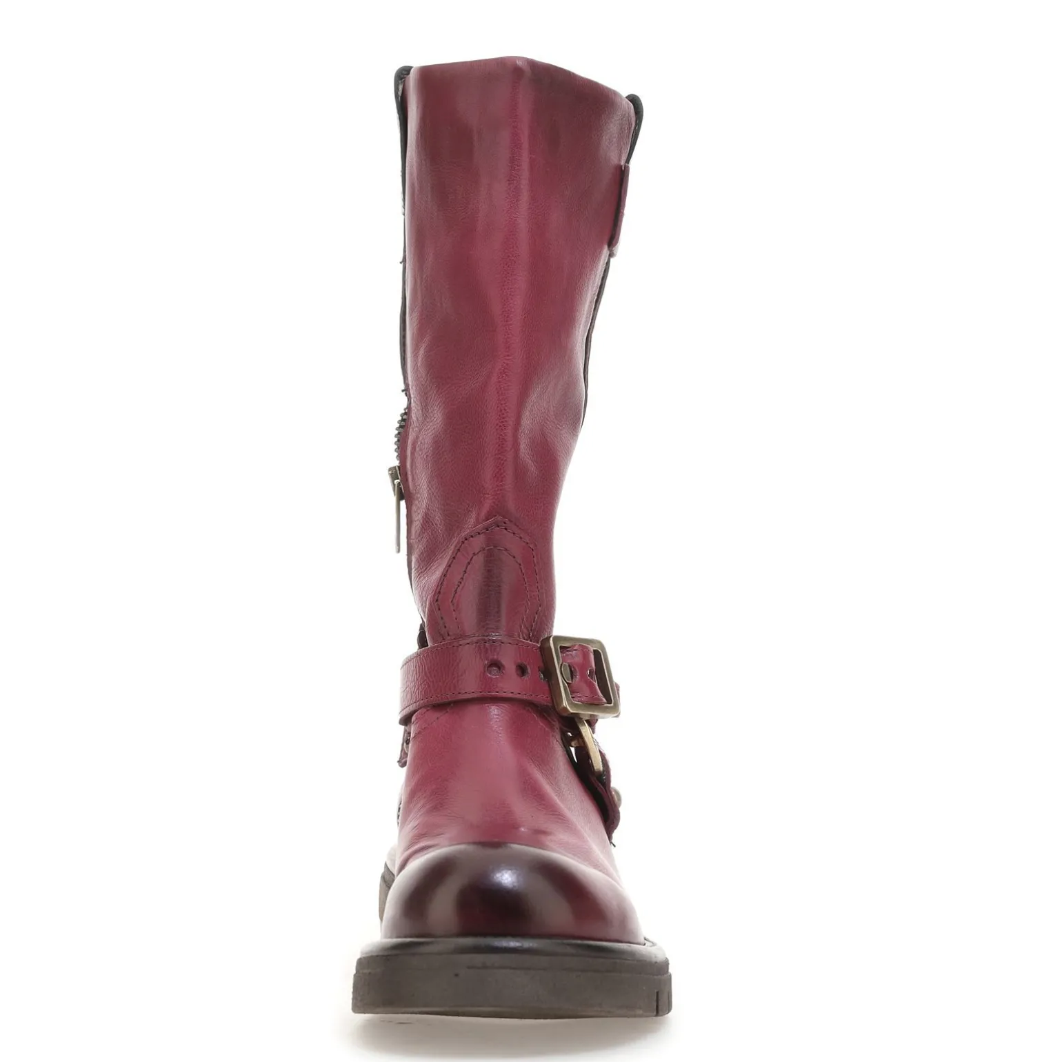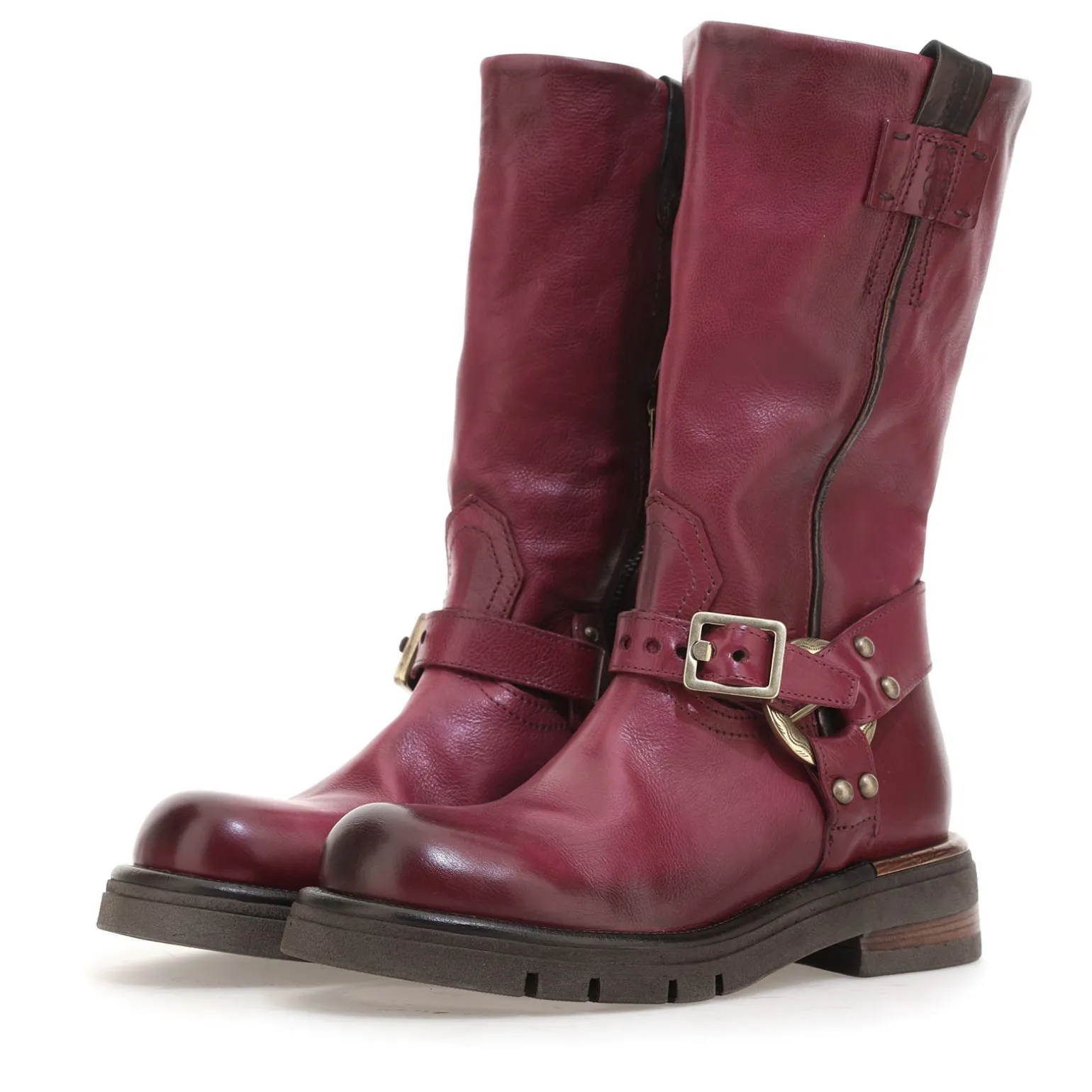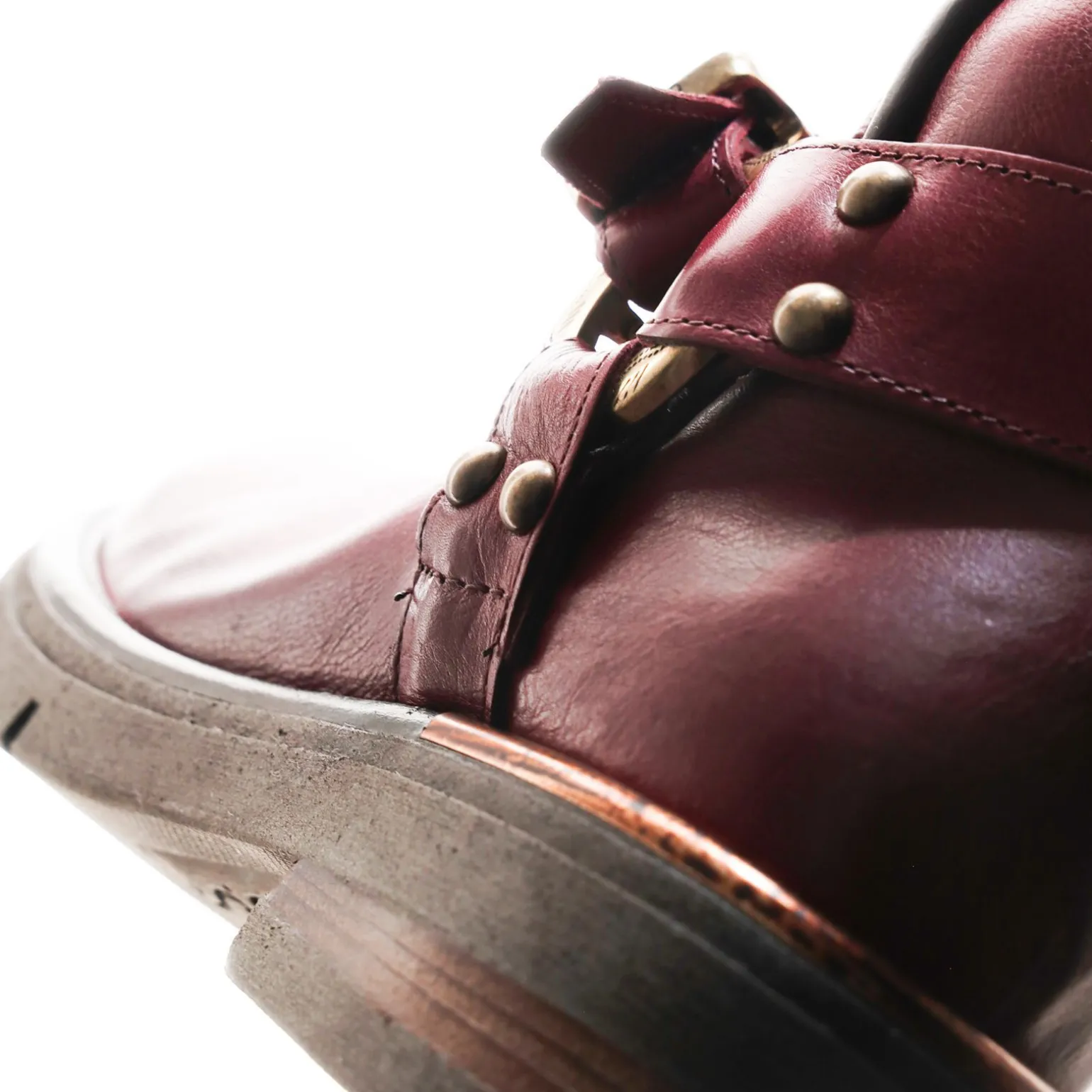 Die Echtlederstiefel der Linie Ruby folgen den aktuellen Trends, indem sie das Paradigma des traditionellen Schuhwerks umstoßen. Die Kollektion zeichnet sich durch die Verwendung eines großen Gummiabsatzes und eine Neuinterpretation der Abmessungen aus und zeichnet sich durch ein besonderes Detail aus: ein Metallelement an der Unterseite des Absatzes.