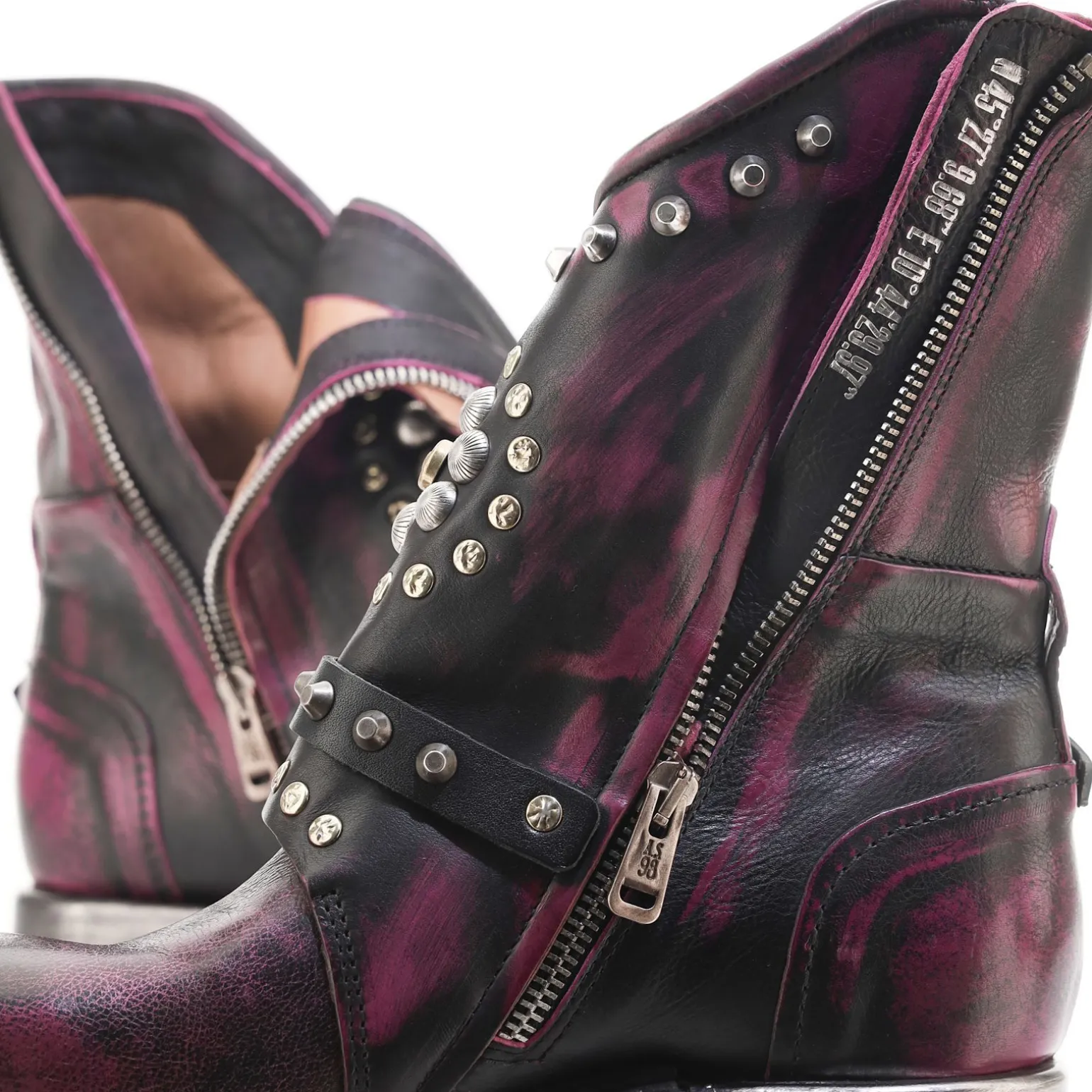Die Linie Archè zeichnet sich durch Schuhe und Stiefel mit einem unverwechselbaren, rebellischen Design aus, das durch wichtige Reißverschlüsse und Schnallen gekennzeichnet ist. Einige Modelle greifen das Design von Stücken auf, die die Geschichte der Marke geprägt haben, indem sie die ikonischen Stiefel der zeitlosen Rockstar-Kollektion wieder aufgreifen, aber mit einem modernen Twist.