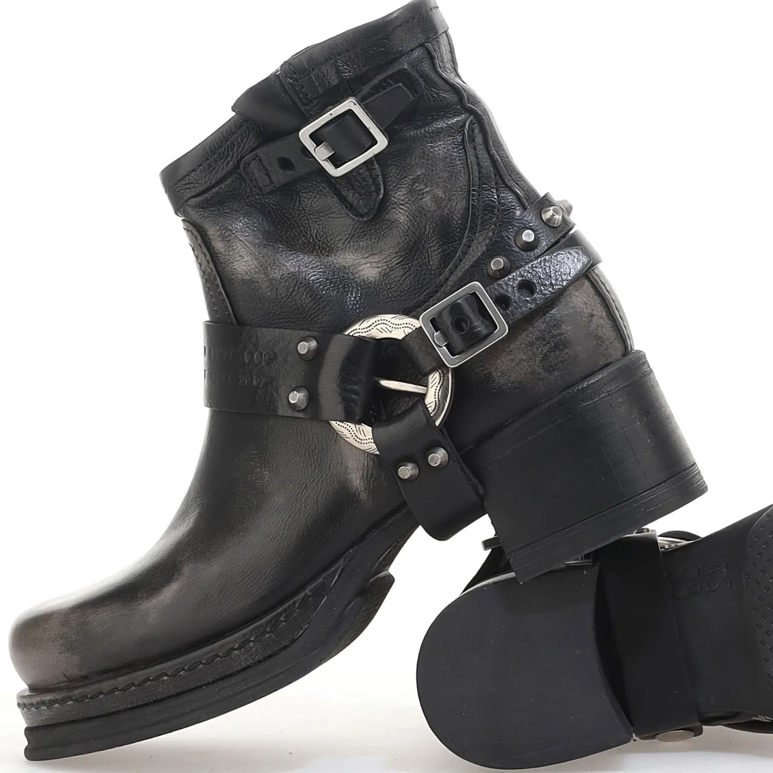 Die Lederstiefel und -stiefeletten aus der Climb-Kollektion zeichnen sich durch ihre Sohlenkonstruktion mit umwickeltem Leder und Plateau-Effekt sowie einer zentralen Naht aus. Die Kollektion umfasst Biker-Stiefel in verschiedenen Höhen mit bedeutenden, aber unauffälligen Accessoires.