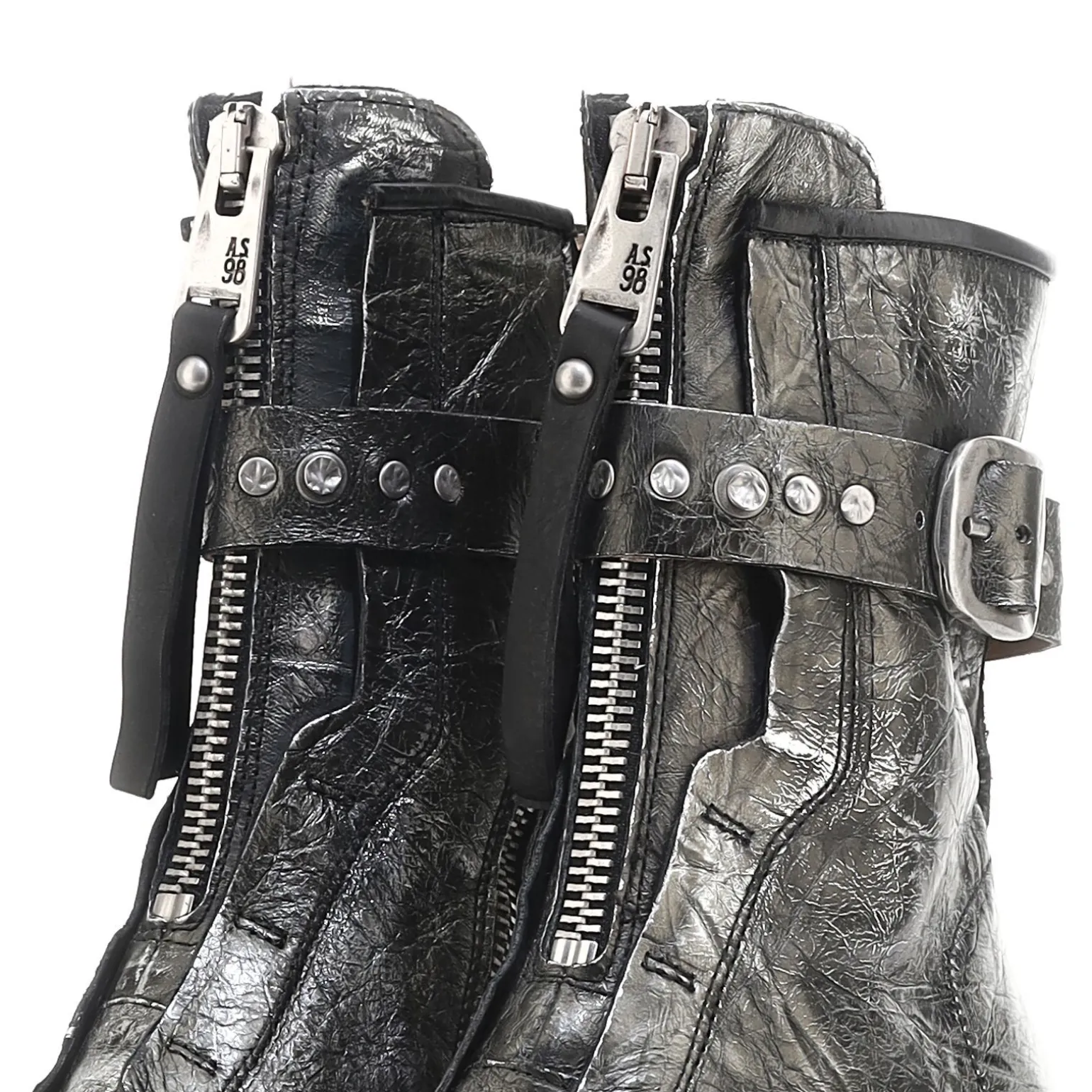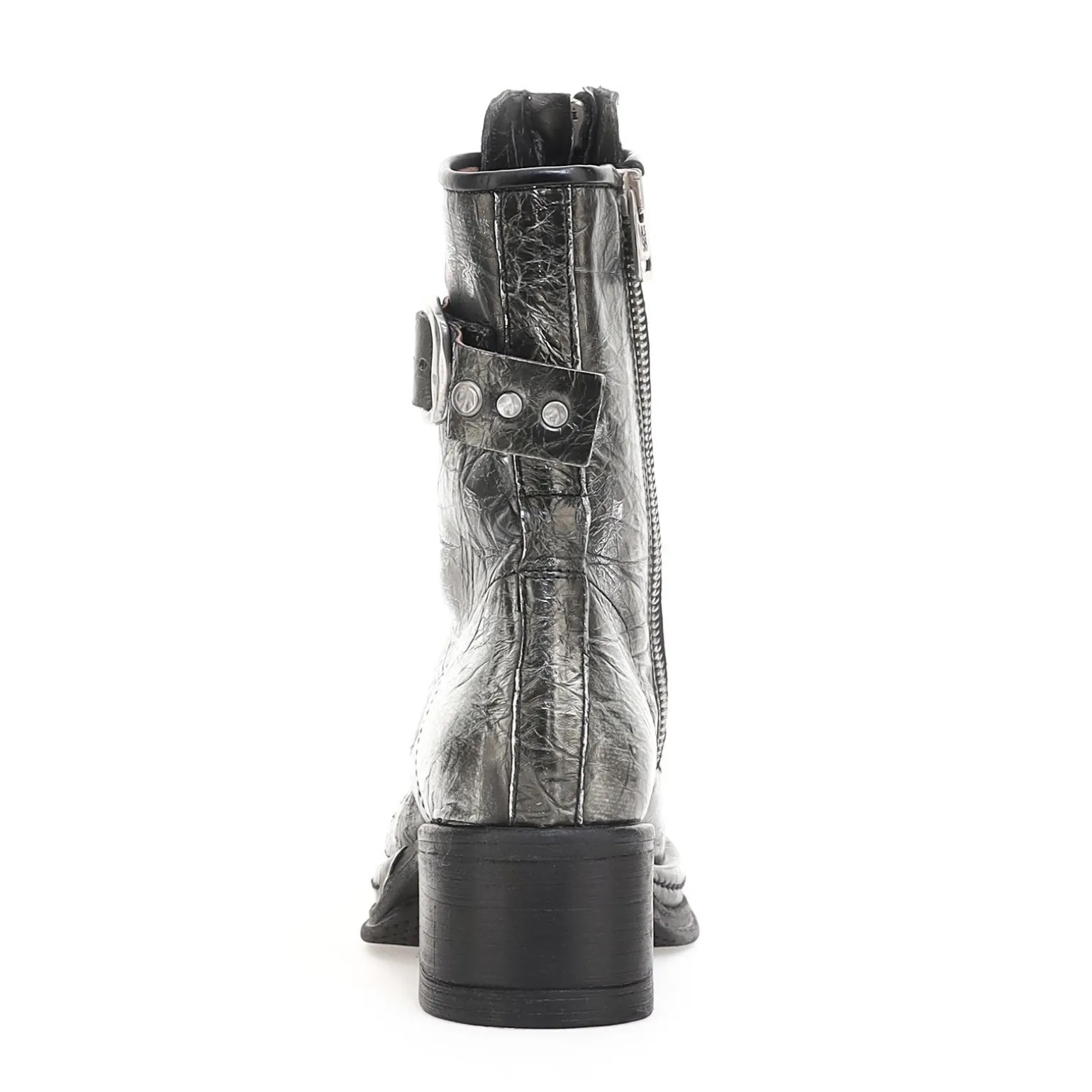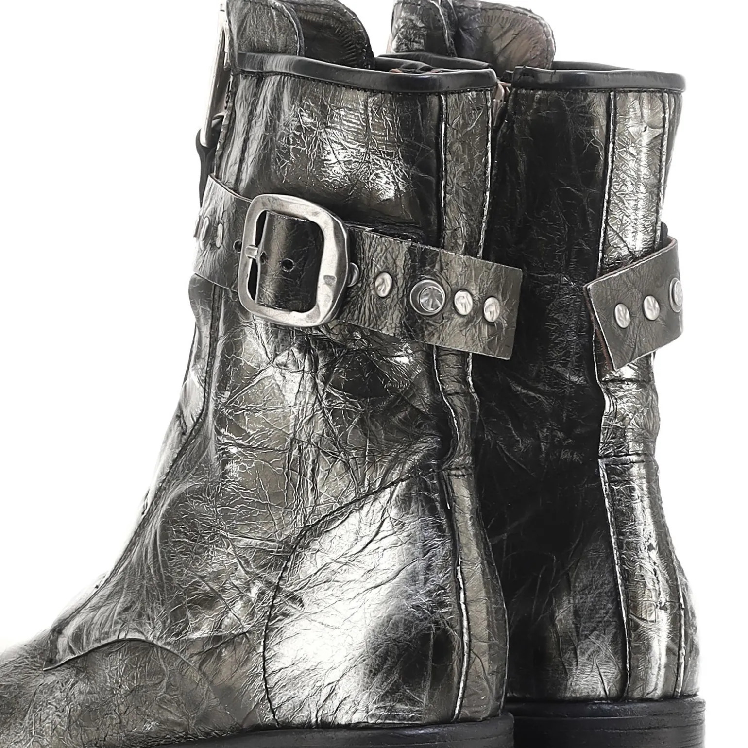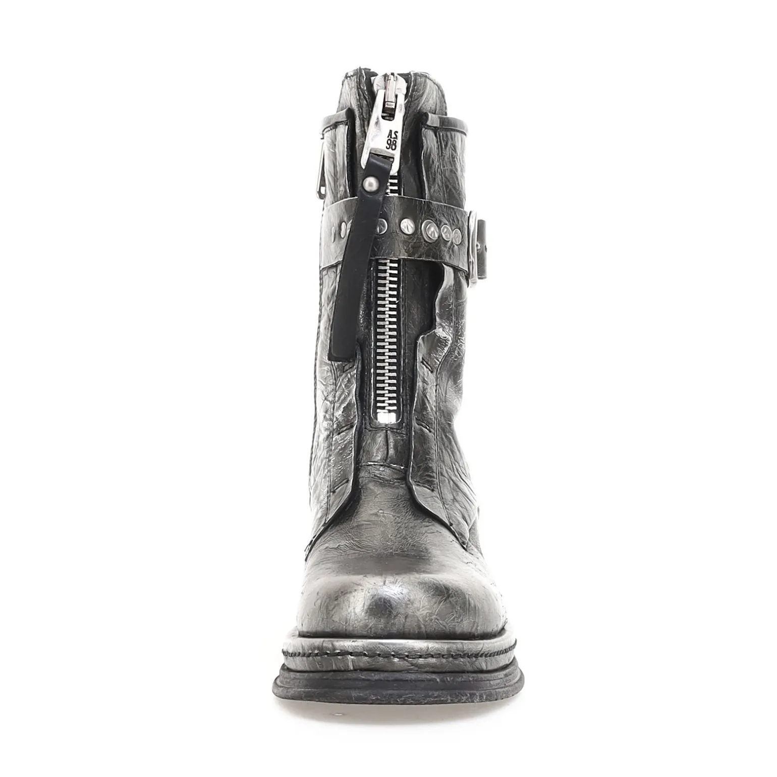 Die Lederstiefel und -stiefeletten aus der Climb-Kollektion zeichnen sich durch ihre Sohlenkonstruktion mit umwickeltem Leder und Plateau-Effekt sowie einer zentralen Naht aus. Die Kollektion umfasst Biker-Stiefel in verschiedenen Höhen mit bedeutenden, aber unauffälligen Accessoires.