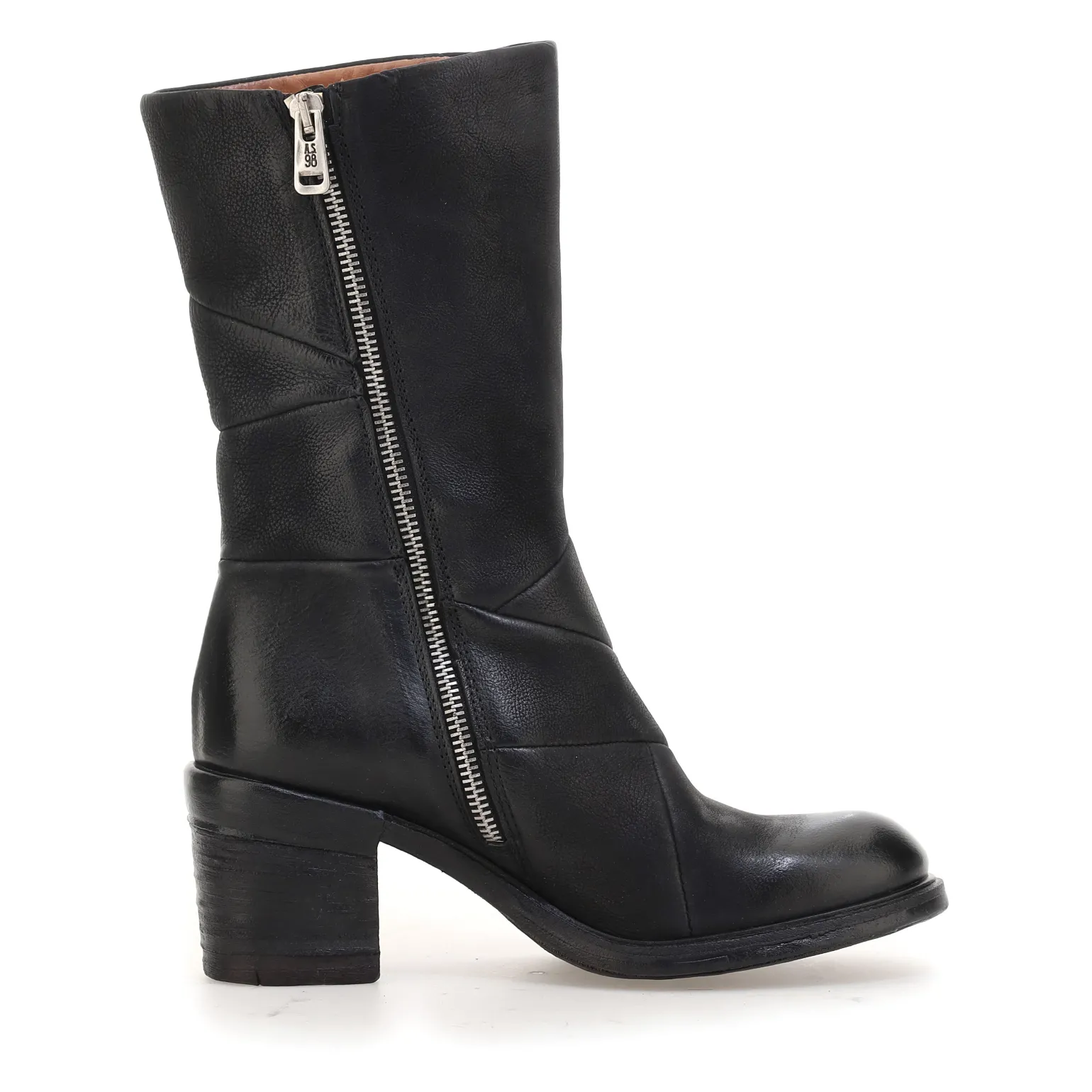 Die Jamal-Linie umfasst Stiefel, Stiefeletten und Schuhe mit einer eleganten Silhouette und einem starken Charakter. Das von Hand auf der Rückseite des Absatzes aufgebrachte Lederdetail verstärkt die DNA der Marke AS98.