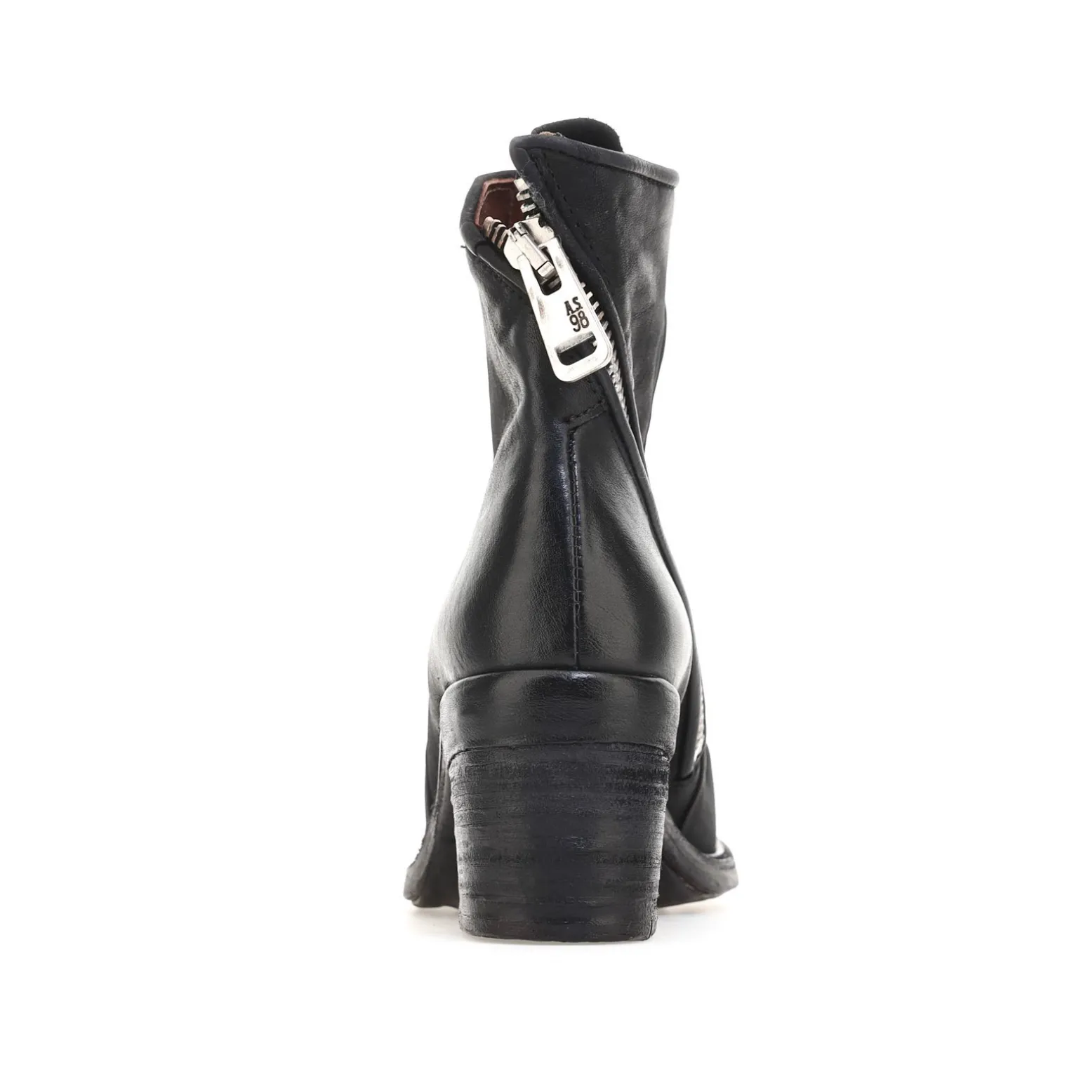 Die Jamal-Linie umfasst Stiefel, Stiefeletten und Schuhe mit einer eleganten Silhouette und einem starken Charakter. Das von Hand auf der Rückseite des Absatzes aufgebrachte Lederdetail verstärkt die DNA der Marke AS98.