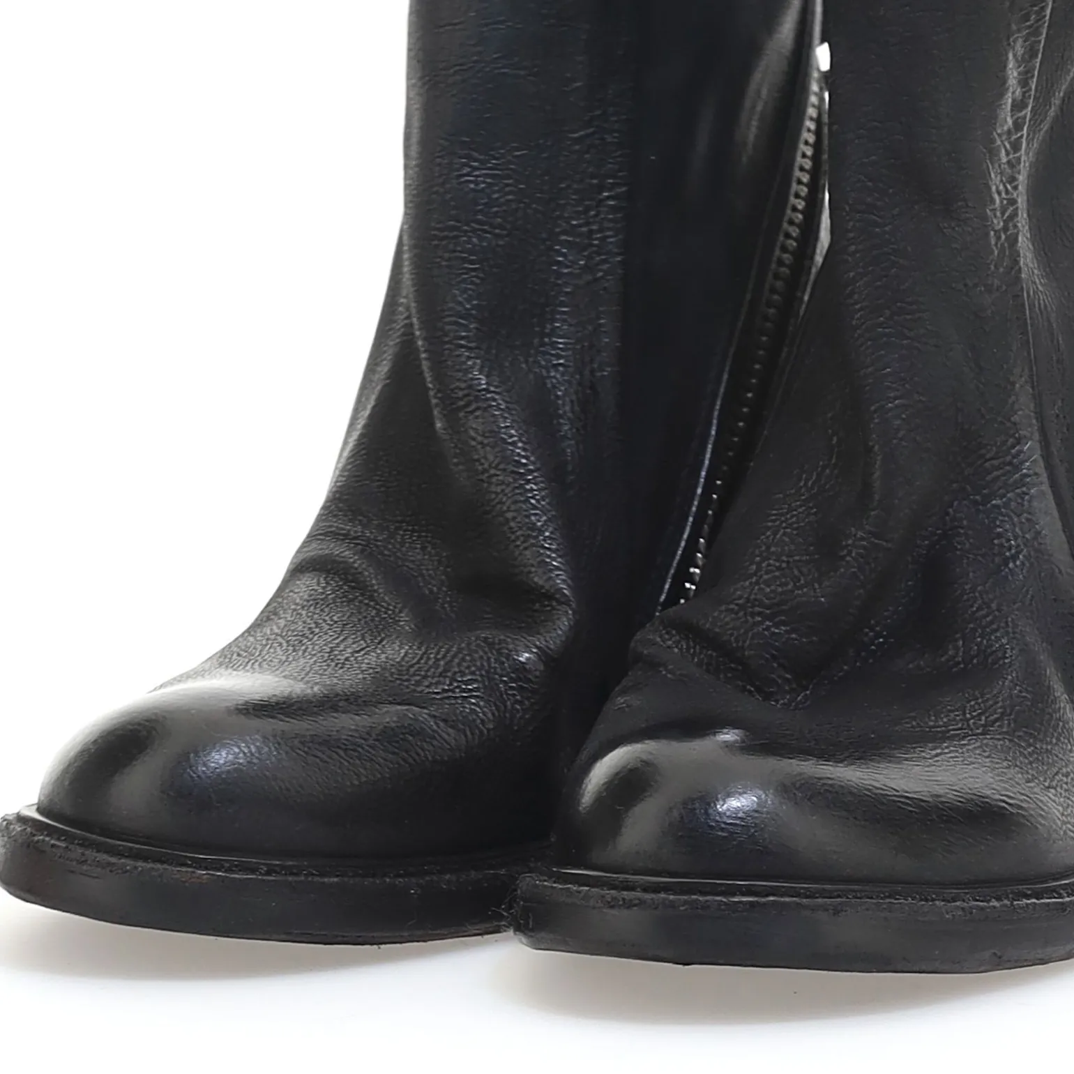 Die Jamal-Linie umfasst Stiefel, Stiefeletten und Schuhe mit einer eleganten Silhouette und einem starken Charakter. Das von Hand auf der Rückseite des Absatzes aufgebrachte Lederdetail verstärkt die DNA der Marke AS98.