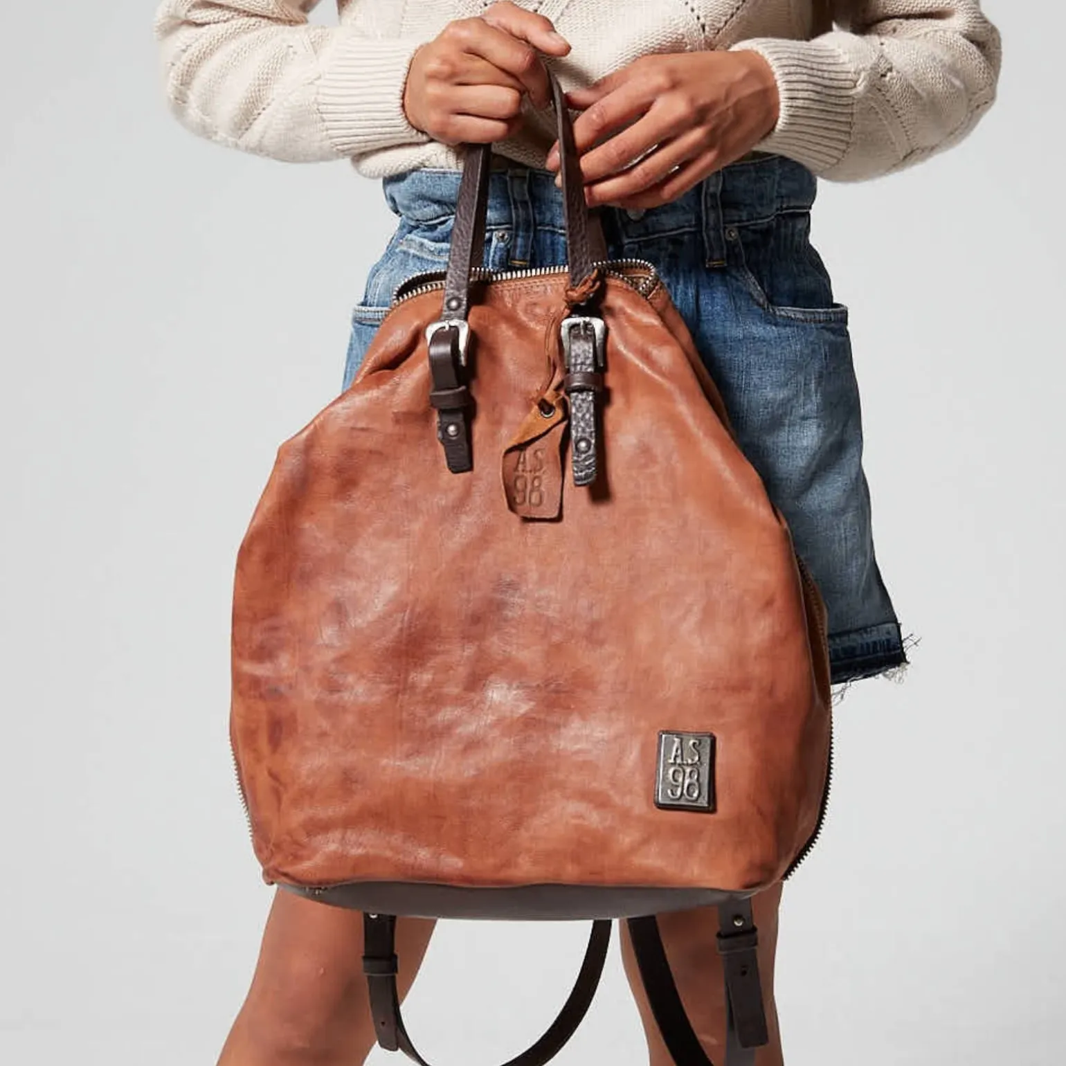 Alle A.S.98-Taschen werden vollständig in Italien entworfen, wo die Verwendung von edlem Leder, sorgfältige Gerbverfahren und raffinierte Handwerkskunst sie einzigartig machen. Jede A.S.98-Ledertasche hat eine Geschichte zu erzählen und drückt den Stil einer Marke mit Charakter aus.