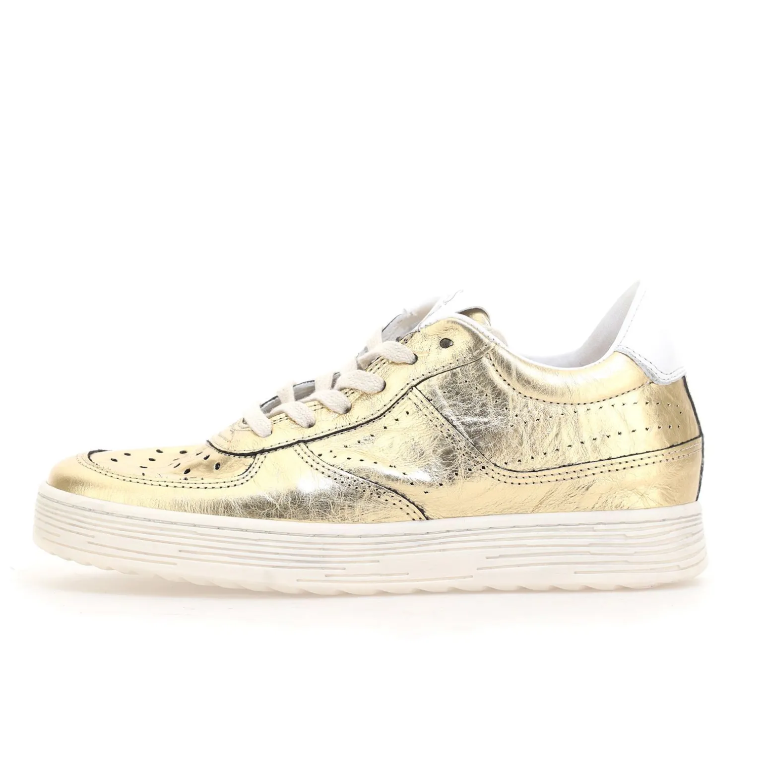 Die Cile Turnschuhe wurden in Anlehnung an eine apokalyptische Zukunft entworfen, wobei die urbane Bildsprache beibehalten wurde. Das Ergebnis ist eine Neuinterpretation von Schuhen mit einem scheinbar einfachen Design, angereichert mit Leder, Denim und Gold- und Silberfolien mit einem gebürsteten Effekt.