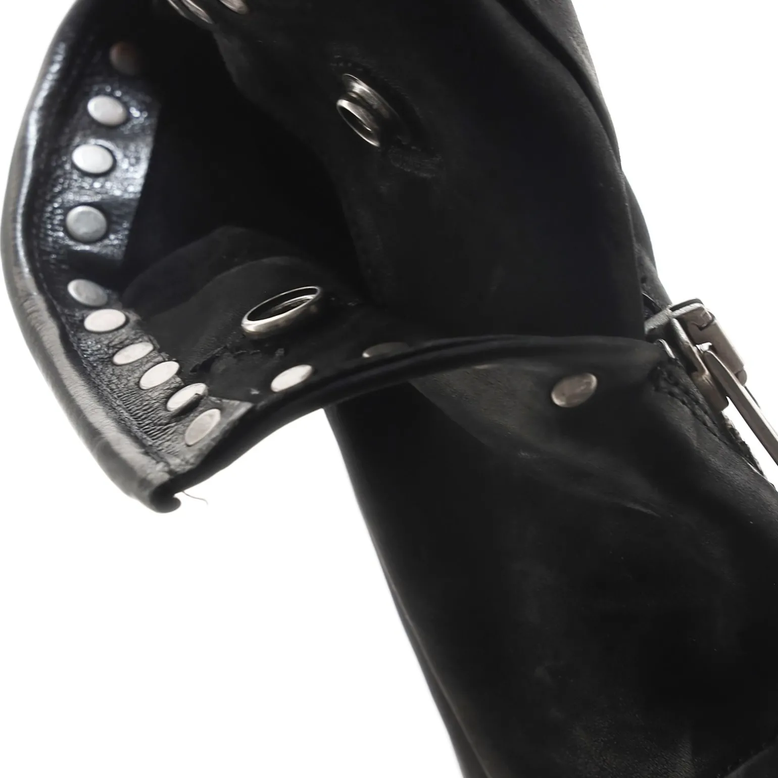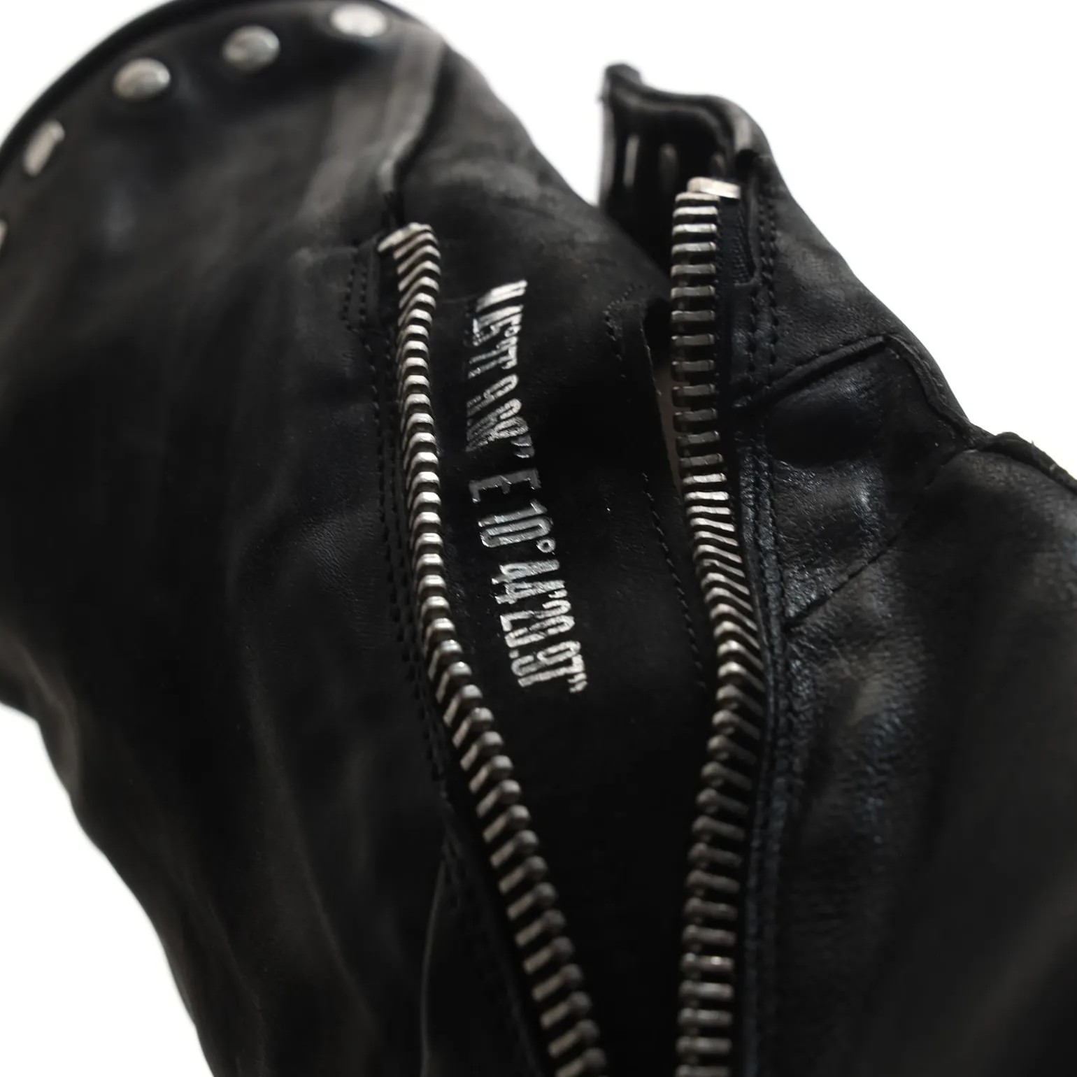 Die Linie Archè zeichnet sich durch Schuhe und Stiefel mit einem unverwechselbaren, rebellischen Design aus, das durch wichtige Reißverschlüsse und Schnallen gekennzeichnet ist. Einige Modelle greifen das Design von Stücken auf, die die Geschichte der Marke geprägt haben, indem sie die ikonischen Stiefel der zeitlosen Rockstar-Kollektion wieder aufgreifen, aber mit einem modernen Twist.