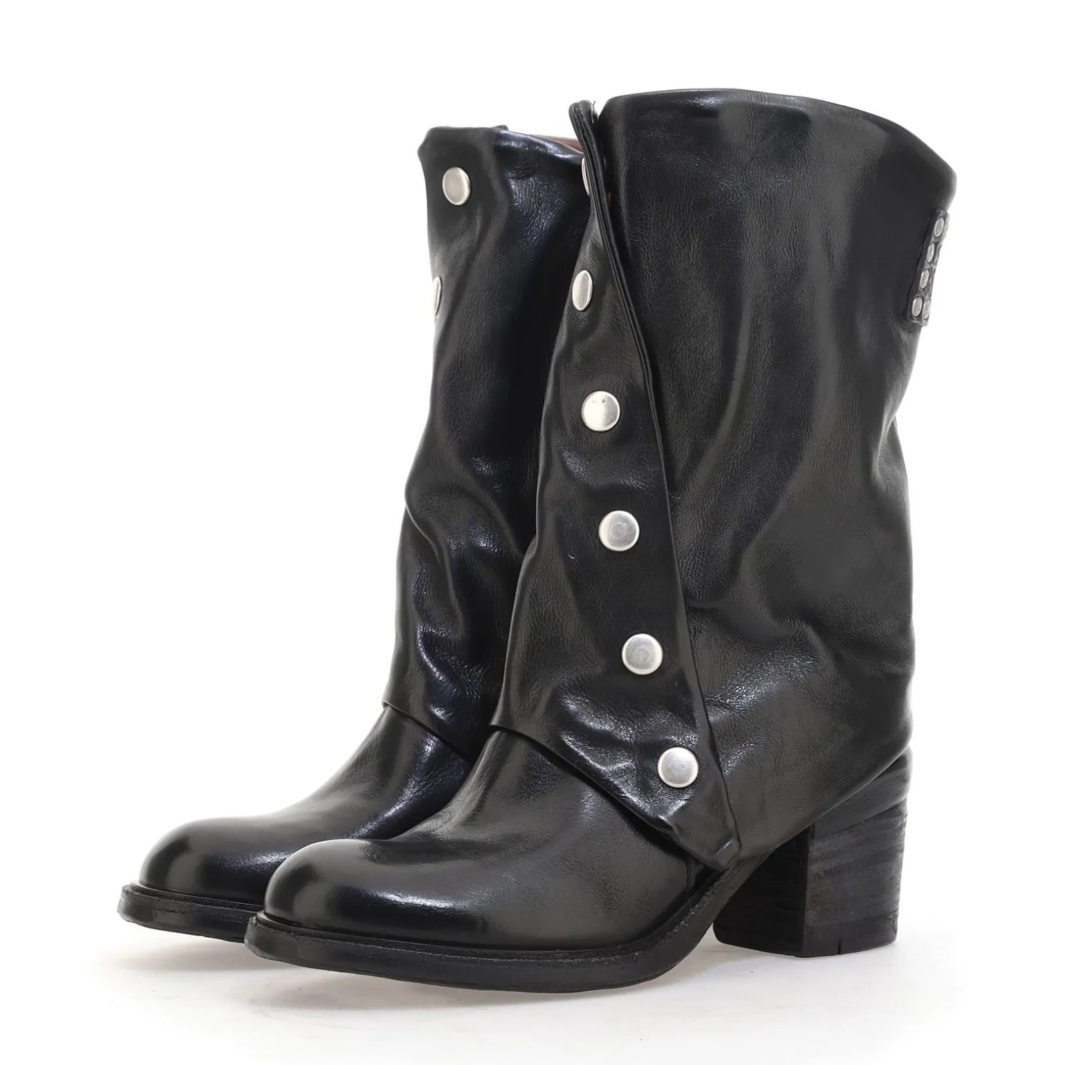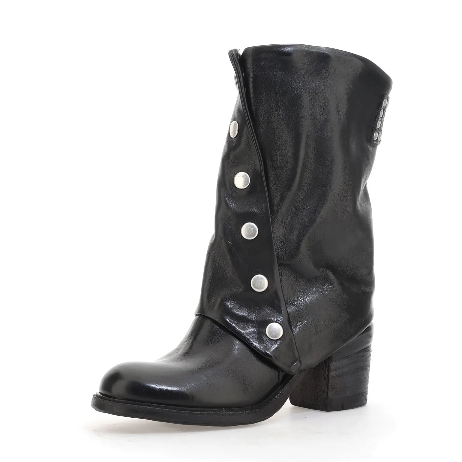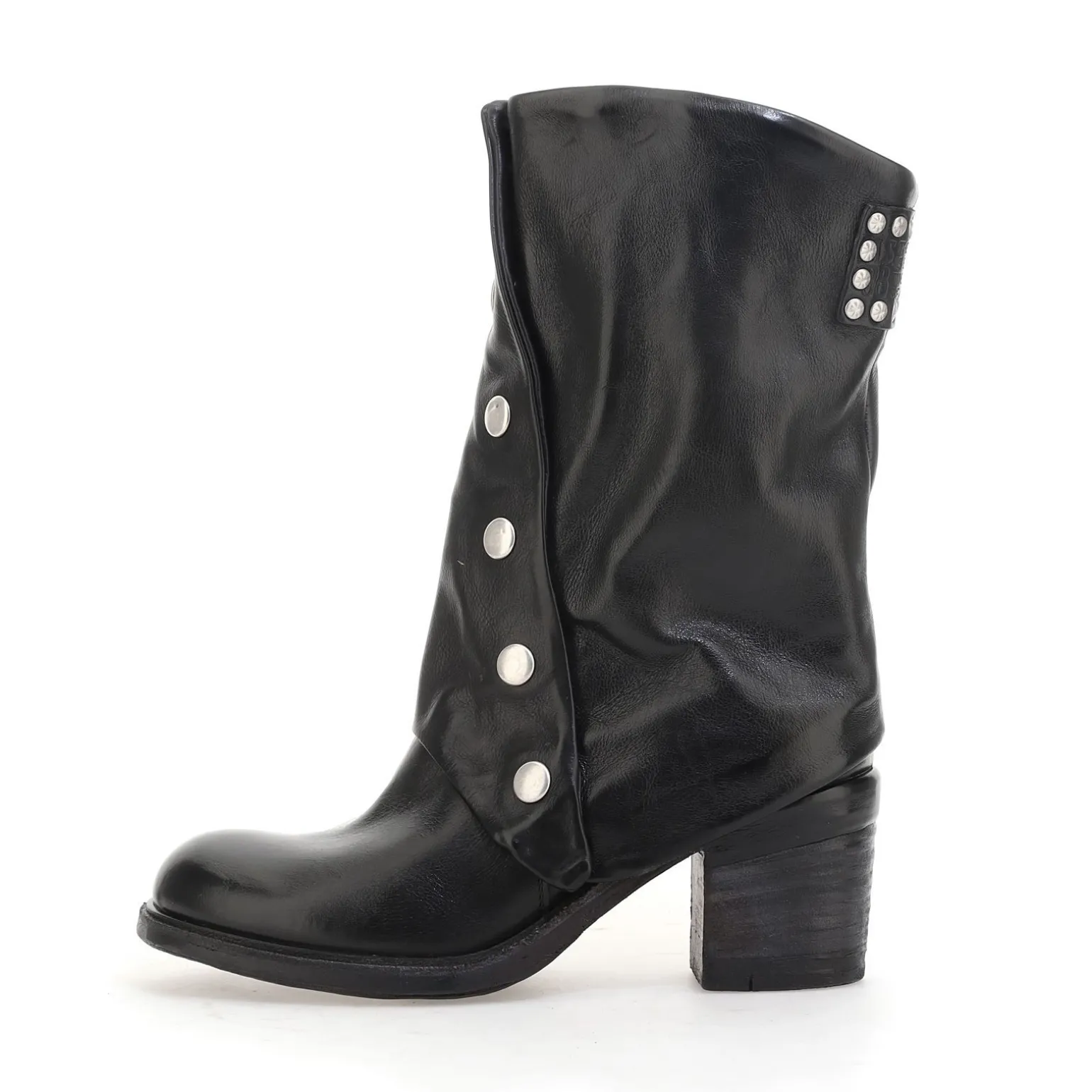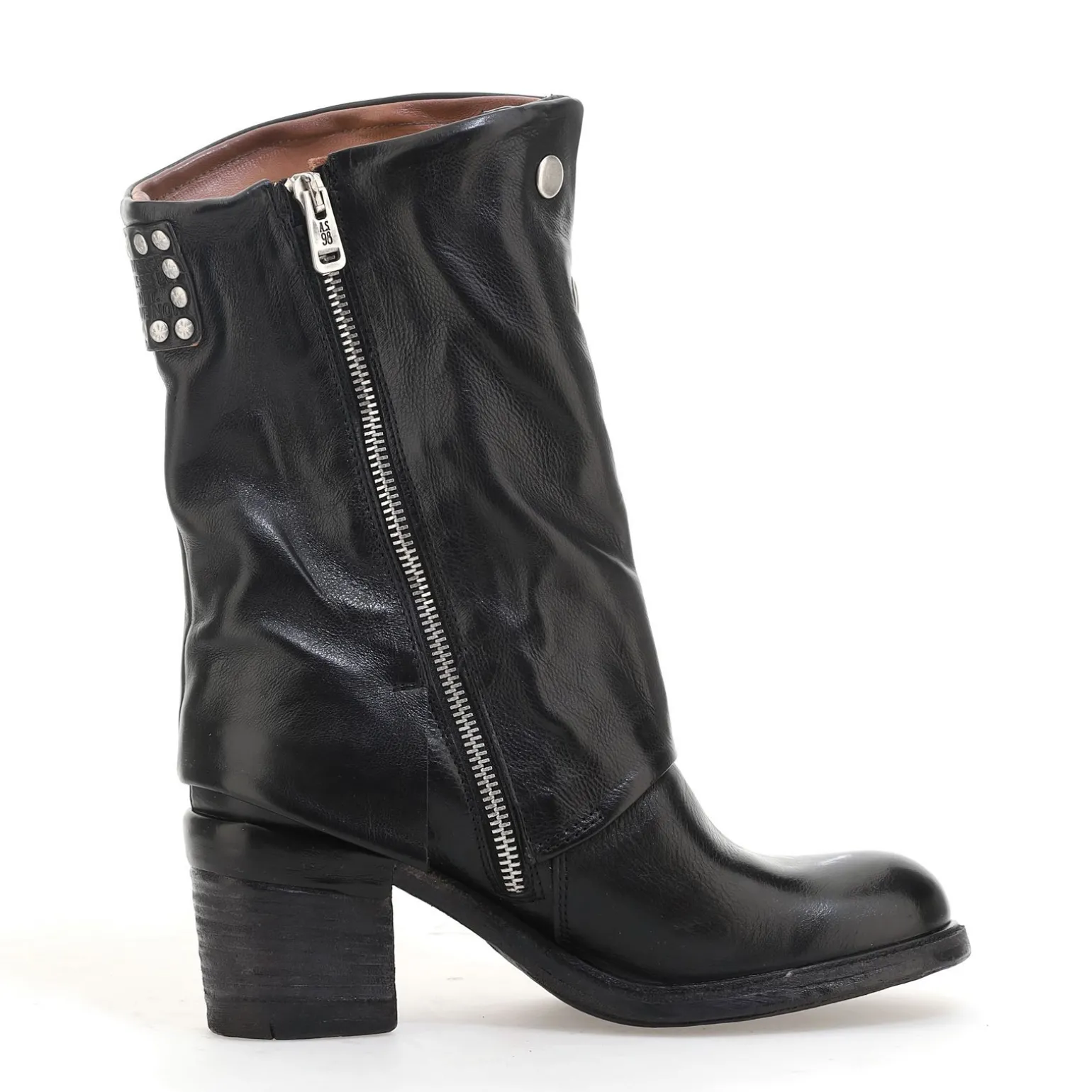 Die Jamal-Linie umfasst Stiefel, Stiefeletten und Schuhe mit einer eleganten Silhouette und einem starken Charakter. Das von Hand auf der Rückseite des Absatzes aufgebrachte Lederdetail verstärkt die DNA der Marke AS98.