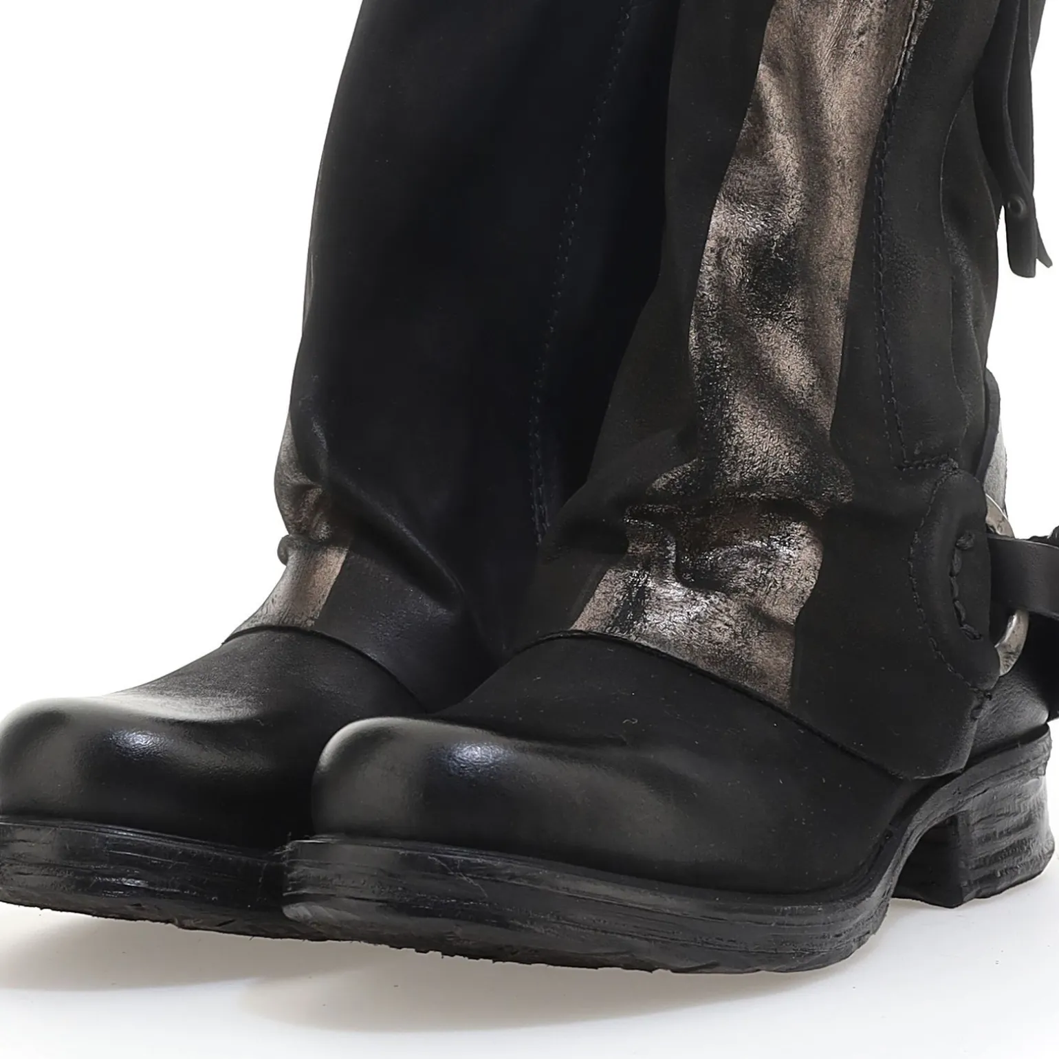 Die Linie Saintec ist unser Timeless Rockstar schlechthin. Die Linie besteht aus Lederstiefeln und Stiefeletten, die jede Saison mit neuen Themen überarbeitet werden: Haken an den Schnürungen, Revers mit Farben und Dekors im Ethno-Look, Ösen und auffällige Nieten. In dieser Linie finden wir alle Themen der Wintersaison wieder.